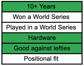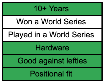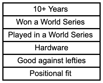 Also as a note they will all be position players because even though a veteran pitcher can be a leader, pitchers and hitters are different. When guys like Henderson and Westburg talk about needing veteran leadership they mean they want someone they can talk to about working through slumps and stuff like that.