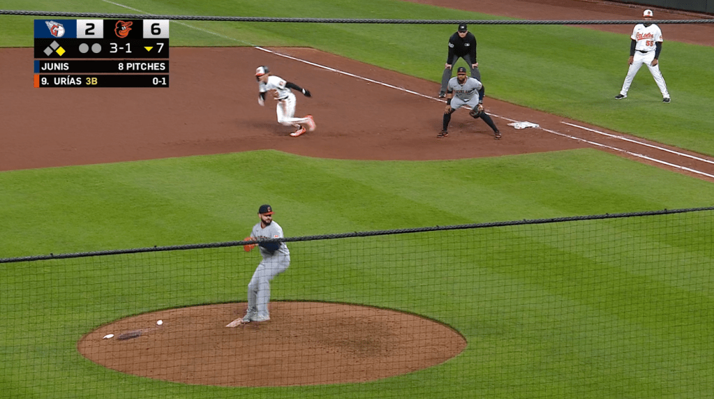 It was also an unfortunate pitch to run on and a great throw by Jeffers. One thing I noticed from watching all of Holliday’s caught stealings was that he was the victim of a lot of absolute lasers from opposing catchers. Maybe this is more of an Adley criticism but there were a lot of throws on Holliday where I felt like that would be the best throw from an Orioles catcher in half a decade.