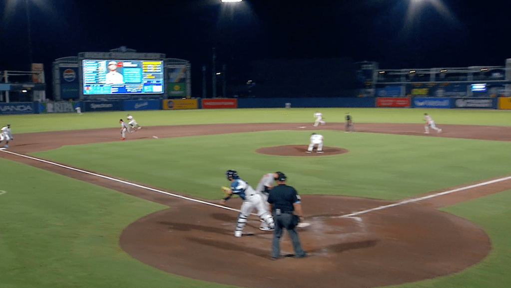 This is another bad jump. It’s somewhat understandable because it’s a full count send in the top of the ninth. So the pitcher knows you’re going and it’s important to make sure you don’t get picked off and you know that the only way there’s going to even be a throw on you is if the batter strikes out.
