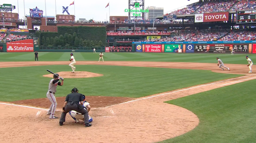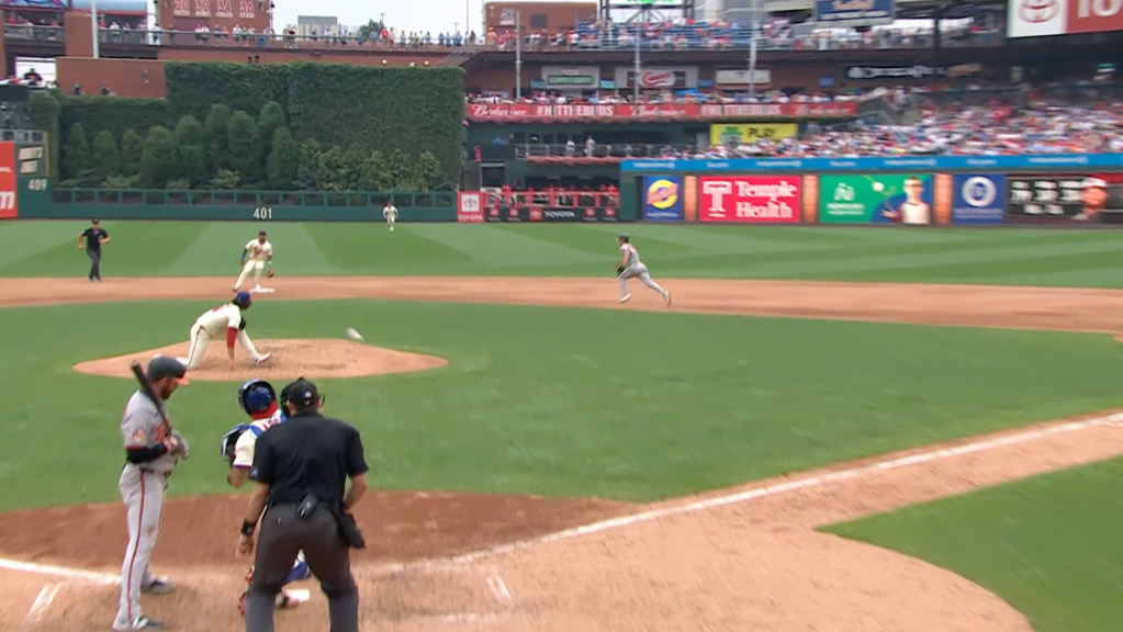 This is one where I don’t think Holliday did anything wrong. It’s a double steal so it’s a play the Orioles are running, Holliday gets a decent jump and Jansen just throws a dart down the third baseline even with Westburg partially obstructing his path. Sometimes you just get caught.