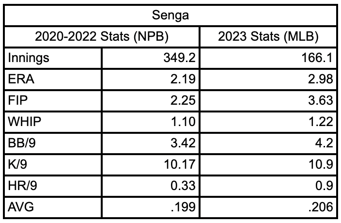 That being said the “bad” season Senga just had that made him extremely available resulted in a 3.02 ERA over 22 starts so it’s not like we’re talking about someone who has completely washed out to the league.