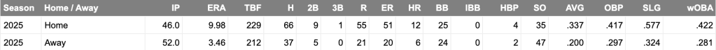 In his first five starts of 2025 he went 6+ innings in four of the five games, pitched to a 2.10 ERA with a 2.50 FIP and 12.3 K/9. He was pretty much exactly what the Marlins hoped he would be when they drafted him 3rd overall in 2020 and what they thought they could expect from him when they called him up in 2022. Then he got hurt again.