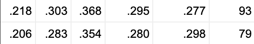 You look at his year over year wRC+ and last year’s 81 is a remarkable outlier. I’d honestly be more concerned if he had put up a 99 wRC+ because that would seem like he was just declining. 81 feels like “Hey it just all fell apart”.