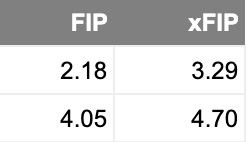 Jojo Romero’s FIP and xFIP against lefties (top) and righties (bottom)